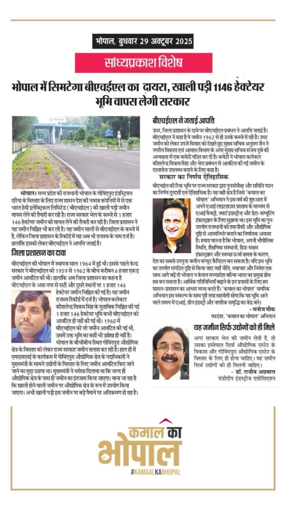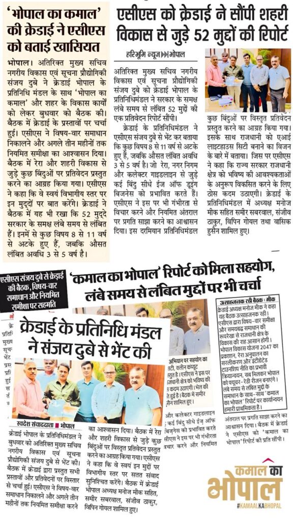 राजधानी भोपाल को अब ‘ग्रोथ हब’ के रूप में विकसित करने की दिशा में ठोस कदम उठाए जा रहे हैं. क्रेडाई का ‘कमाल का भोपाल’…